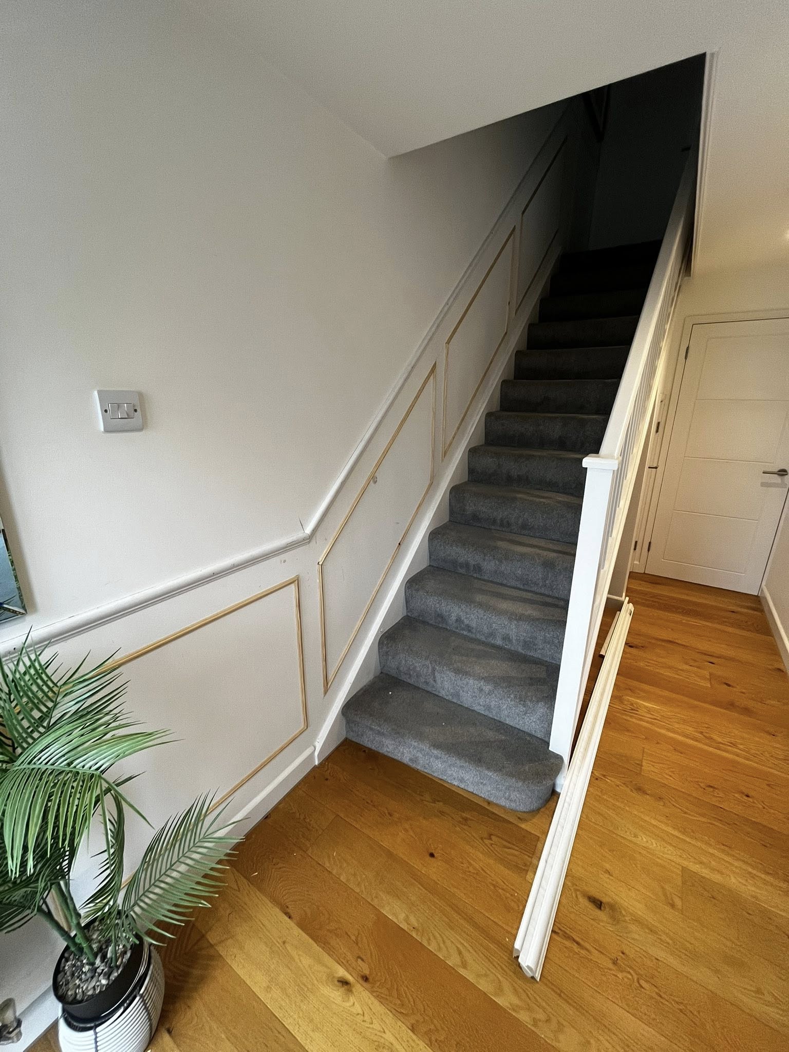 First and second fix carpentry including doors, skirting, staircases, and custom woodwork finished to a high standard.